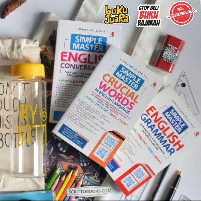 MURAH ! PAKET 3 BUKU BELAJAR BAHASA INGGRIS SIMPLE GRAMMAR SIMPLE MASTER CONVERSATION & CRUCIAL WORDS
