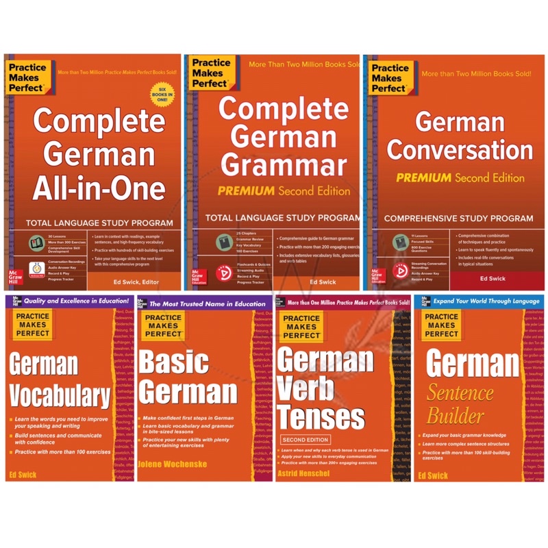 Complete German All in One / Basic German / Verb Tenses / Grammar / Vocabulary / Conversation / Sentence Builder - Practice Makes Perfect | Buku Bahasa Jerman Percakapan